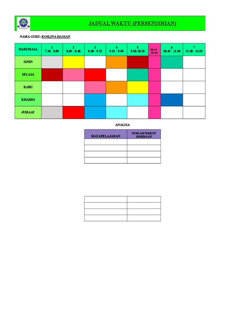 Template Jadual Waktu Kelas Boleh Edit Hanssqw